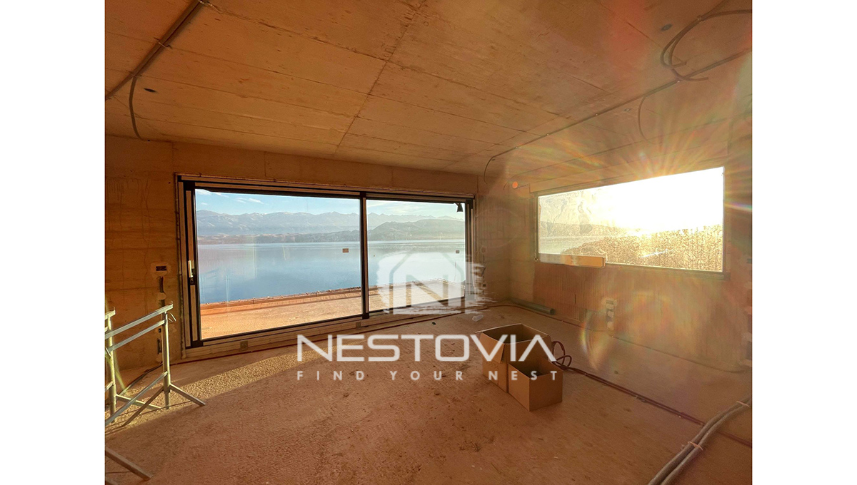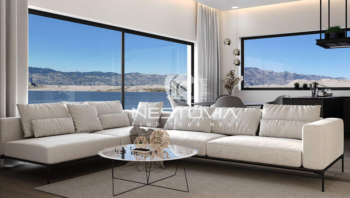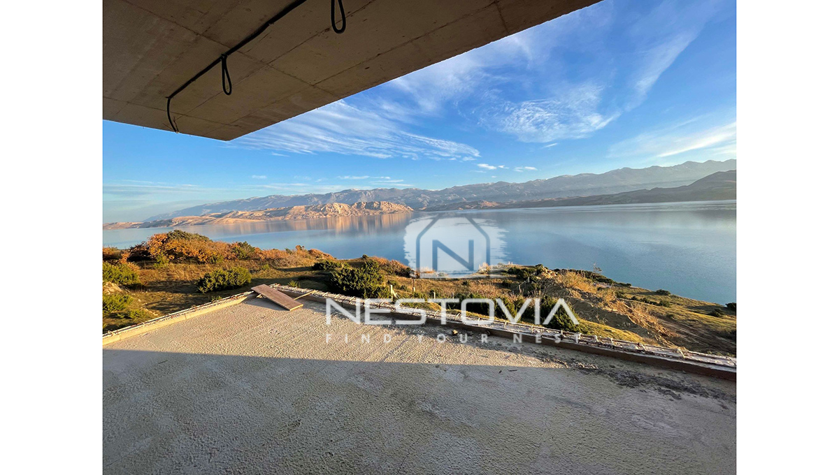 We offer two unique apartments for sale, located on top of a cliff with panoramic views of the sea and the majestic Velebit Mountains in the charming village of Bošana on the island of Pag.