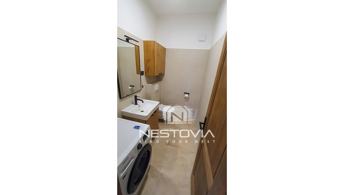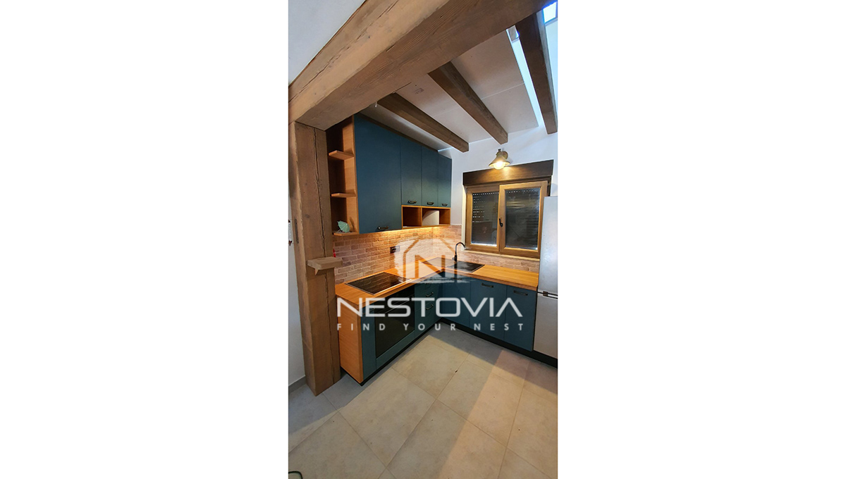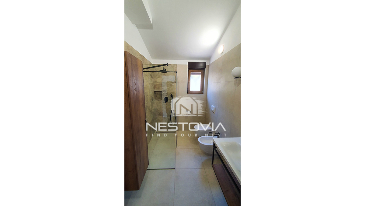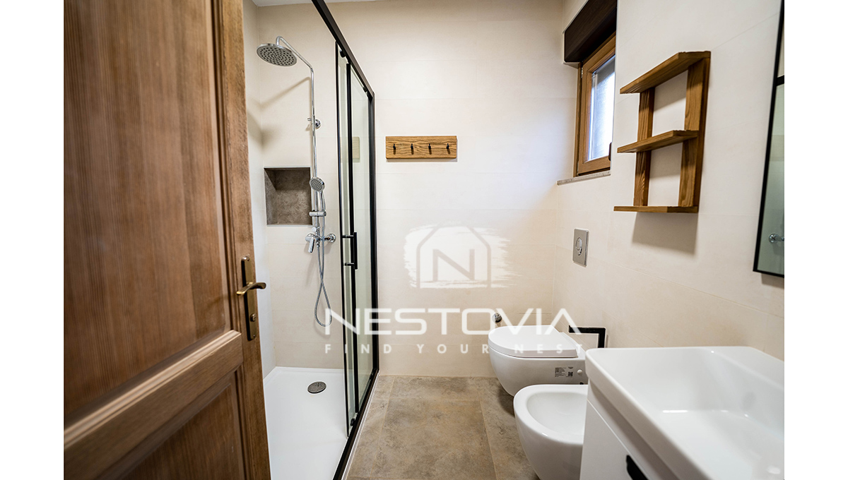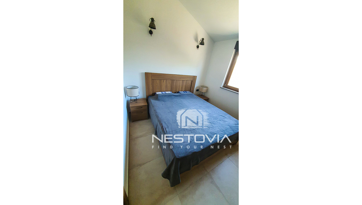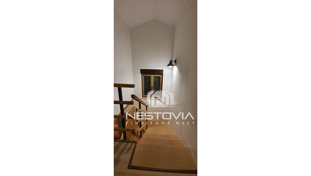 The second smaller apartment – 62 m²- impresses with its open living space, where the kitchen, dining room and living room form a harmonious whole. Two bedrooms on the second floor provide comfortable relaxation, while the master bedroom leads to a spacious rooftop terrace with a pergola, offering picturesque sea views.
