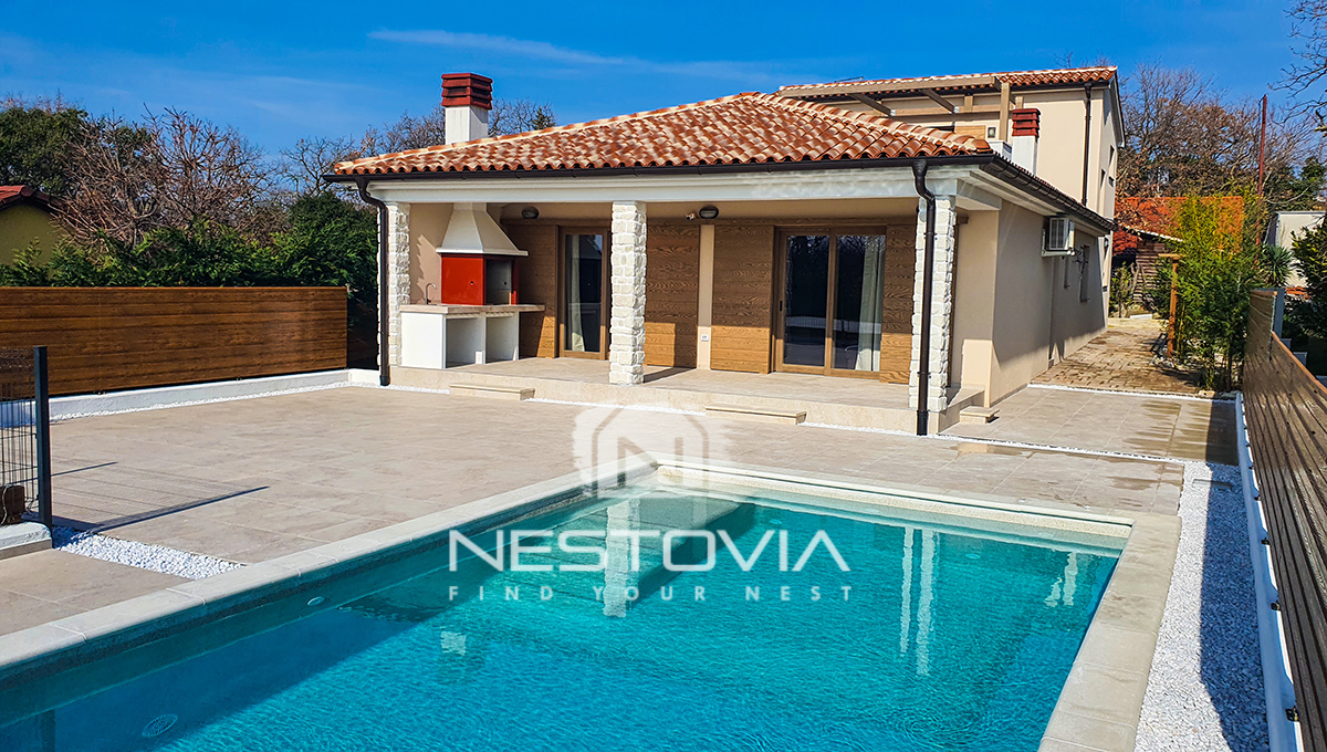 Welcome to an exceptional offer for sale – a modern detached house with a swimming pool, located between the picturesque towns of Rovinj and Pula, just 3 km from the crystal clear sea.