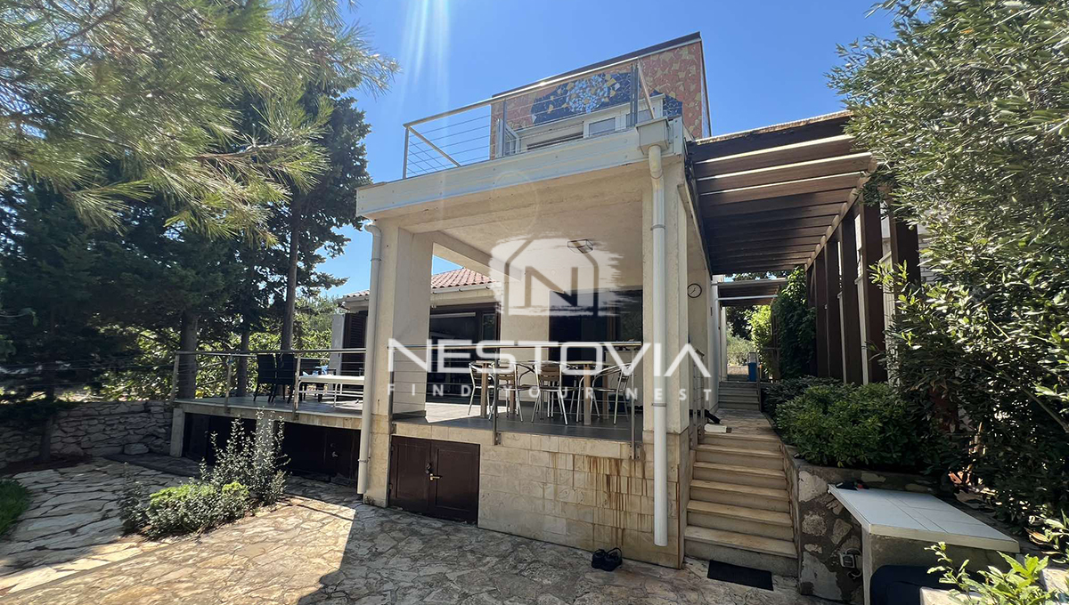 We are selling a detached two-story house with an area of 183.17 m², located in the picturesque town of Tkon on Pašman Island, just 5 meters from the sea. The property is located in a peaceful and quiet area, surrounded by greenery, with a beautiful view of the open sea.