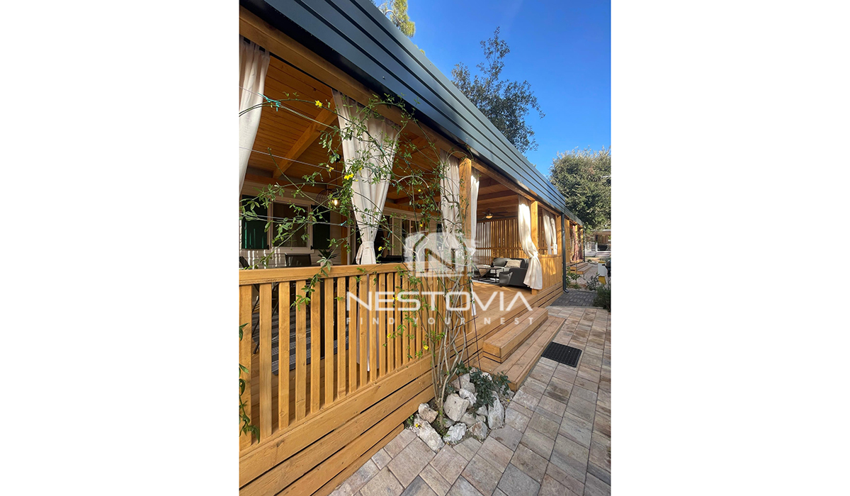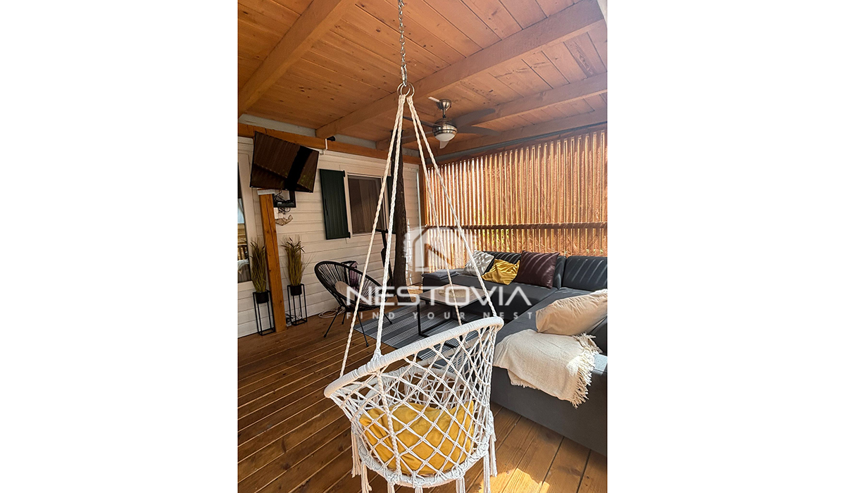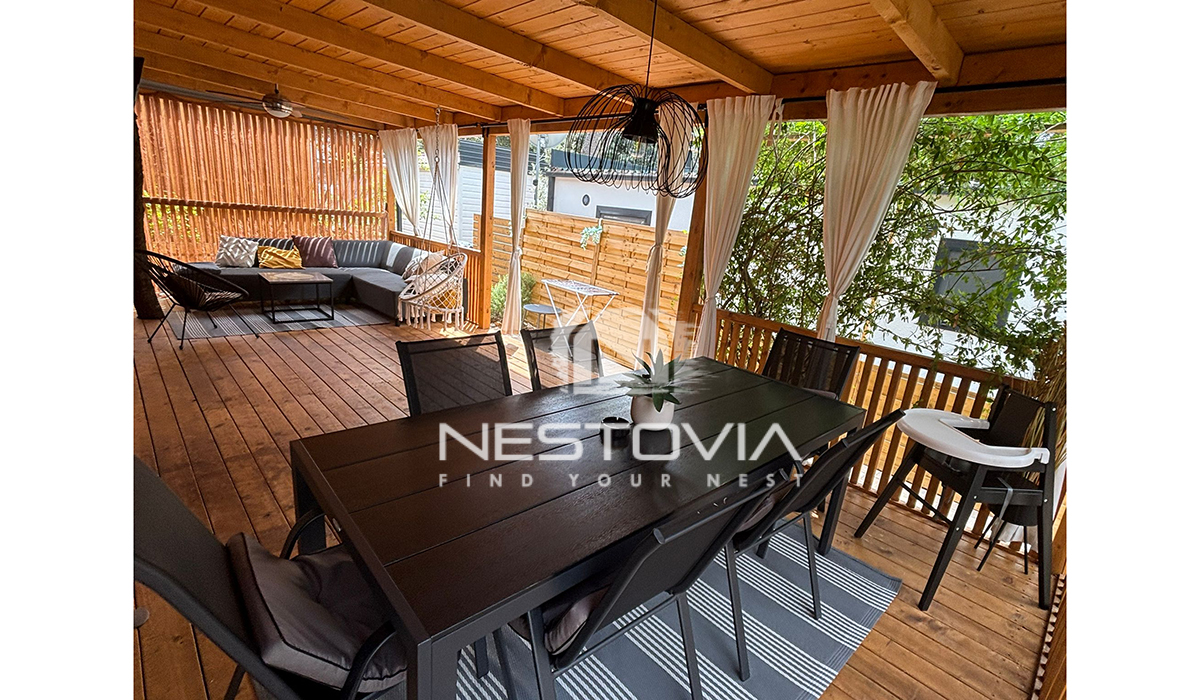 Covered terrace with an area of 24 m² (8.1 m × 3 m) – completely renovated last year, furnished with new furniture, ideal for relaxation and gatherings