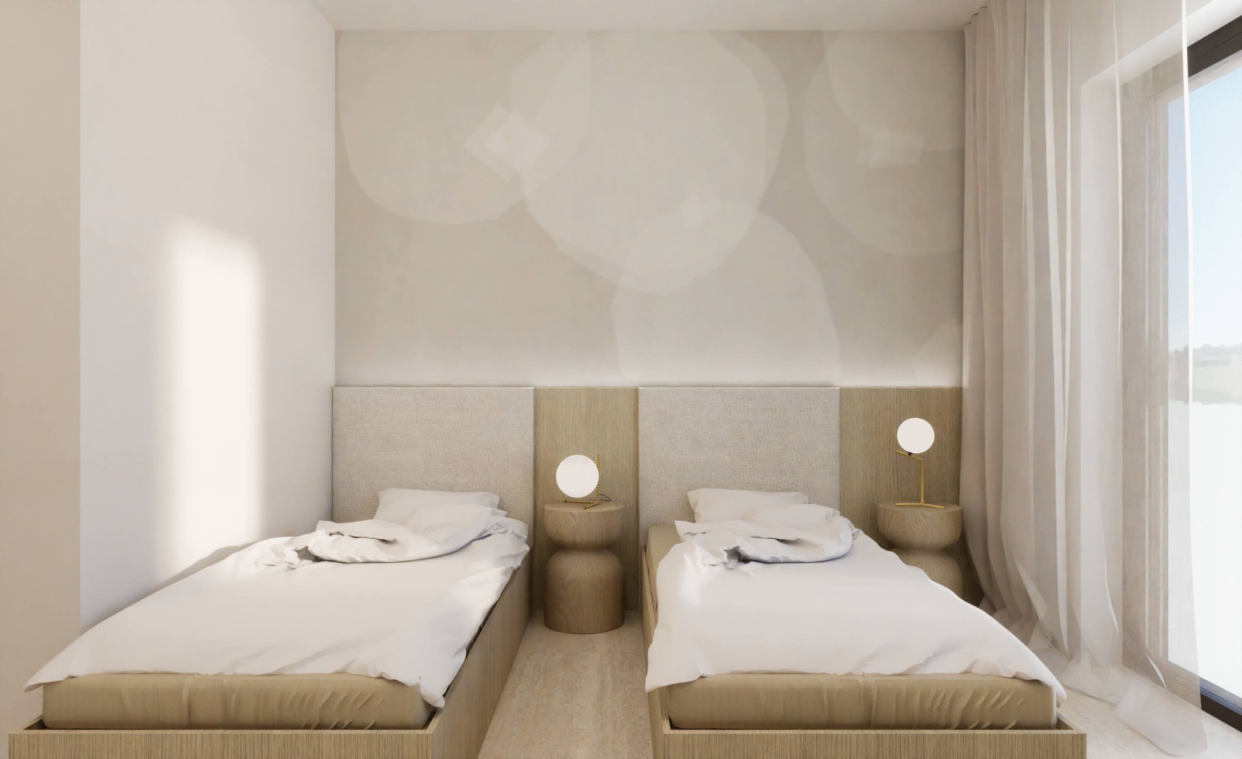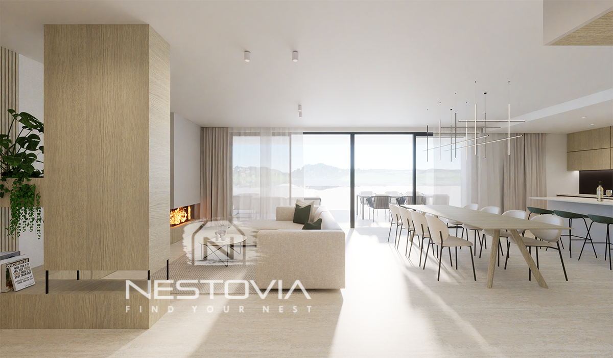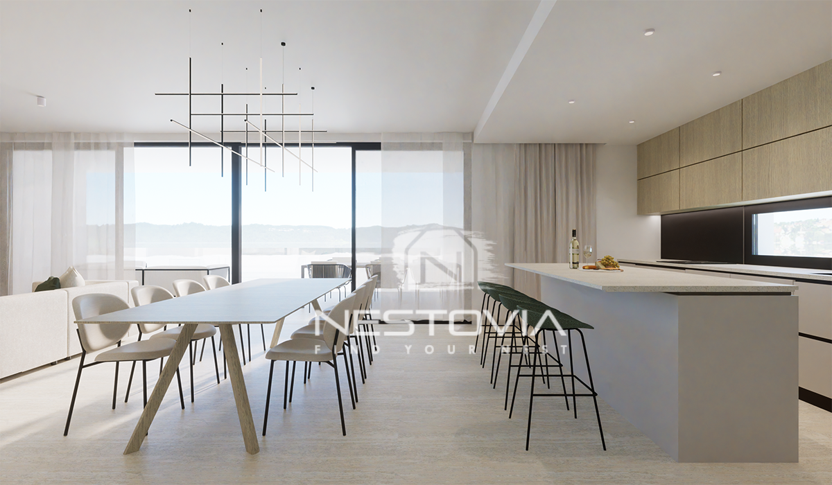 The largest apartment with the possibility of additional amenities: utility room, kitchen with dining area and living room, 3 bedrooms, 3 bathrooms, laundry room, 2 covered terraces, loggia, additional toilet, possibility of installing a private swimming pool or jacuzzi on the roof.