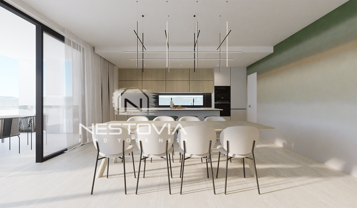 A spacious apartment with a garden, relaxation area, and swimming pool: utility room, kitchen with dining area and living room, 3 bedrooms (one can function as an independent studio), 3 bathrooms, laundry room, 2 large covered terraces, garden (160 m²), summer kitchen and barbecue area, swimming pool, 2 parking spaces.