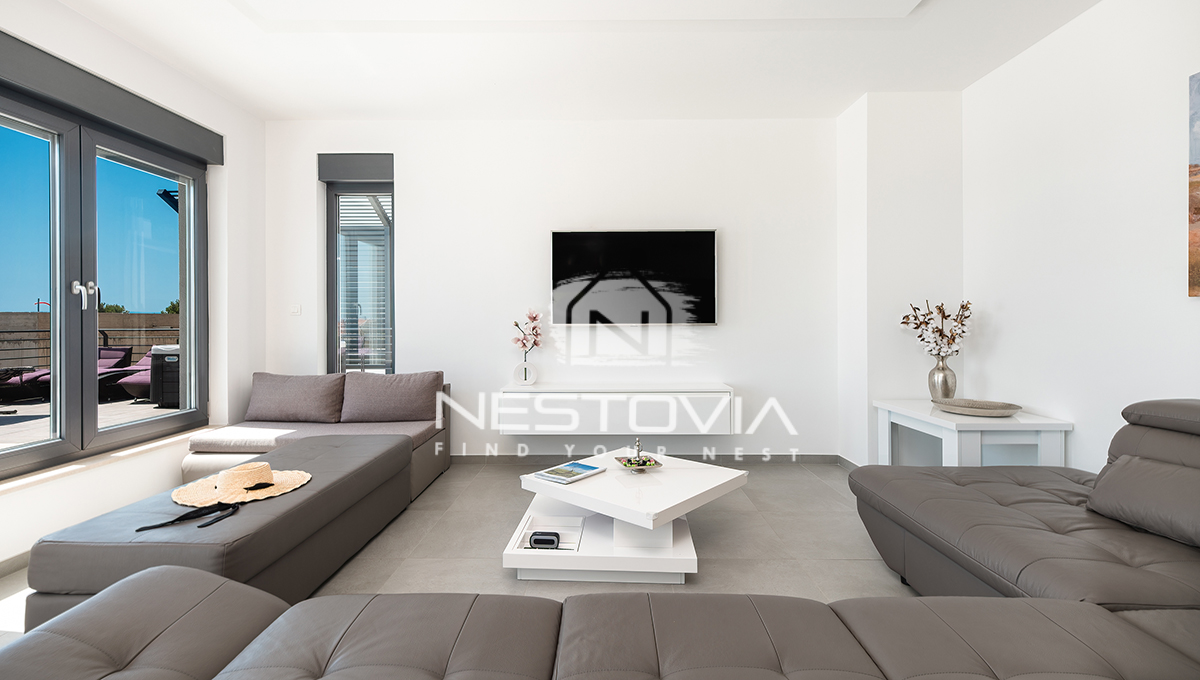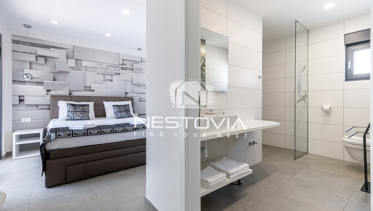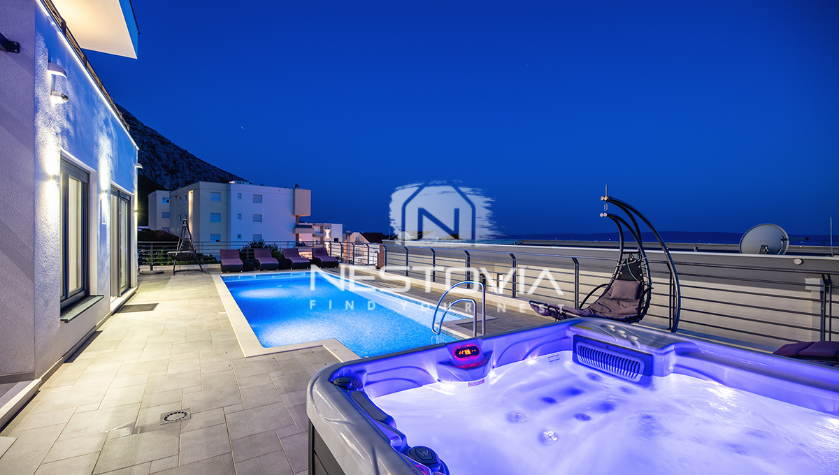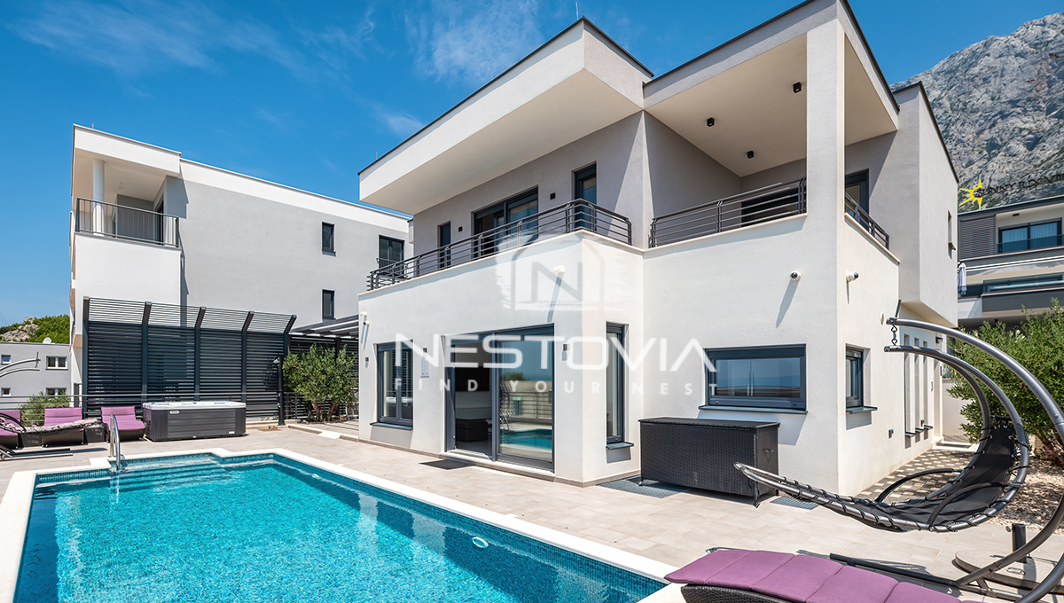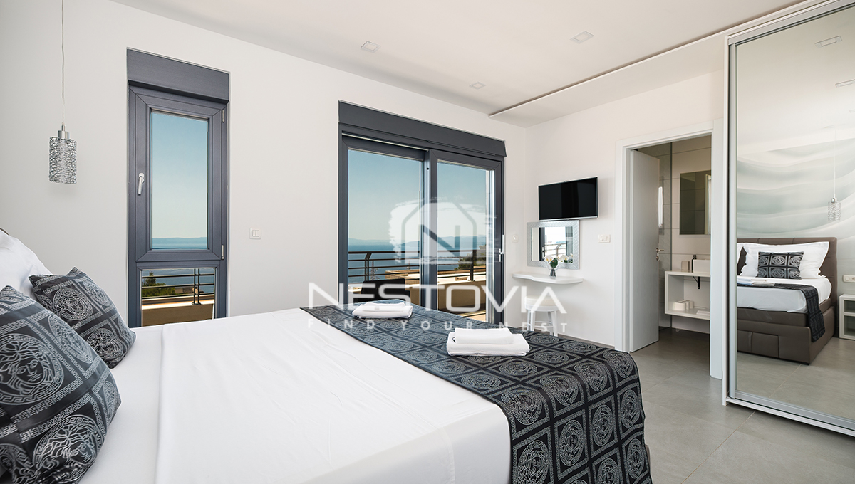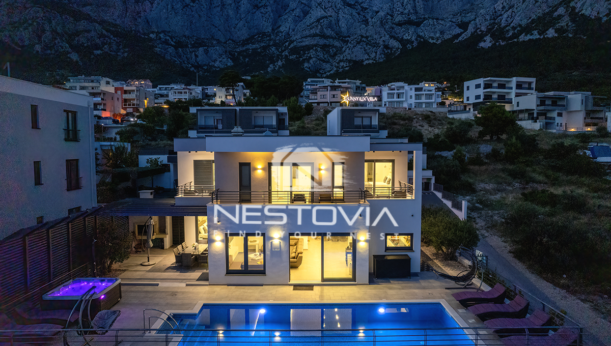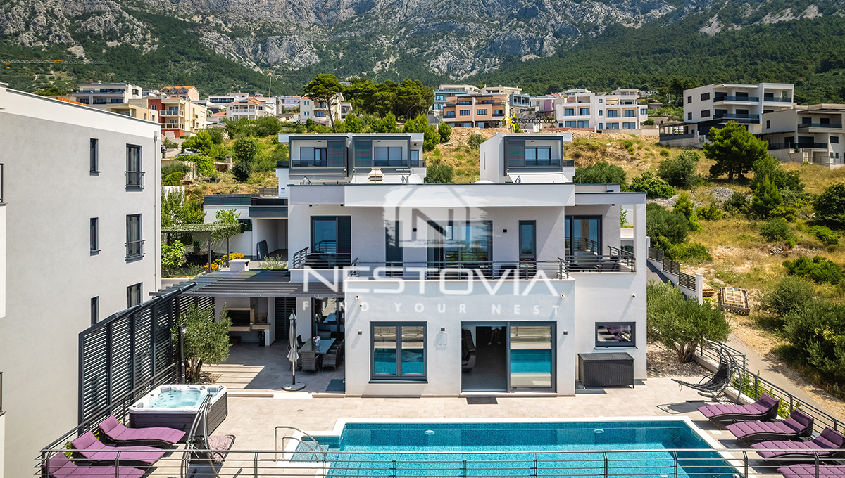 We are selling a 400 m² villa located in the prestigious Veliko Brdo district of Makarska. The property combines modern architecture, superior comfort, and a unique Mediterranean atmosphere. Thanks to its excellent hillside location, the villa offers spectacular views of the Adriatic Sea and Biokovo Mountains, while ensuring complete privacy and tranquility. It is an ideal option for those seeking a luxurious residence, a prestigious holiday home, or a high-yield investment in tourist rentals.