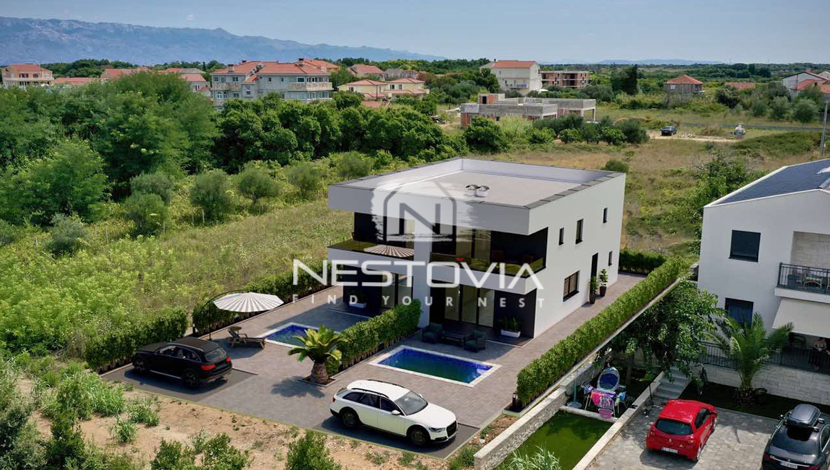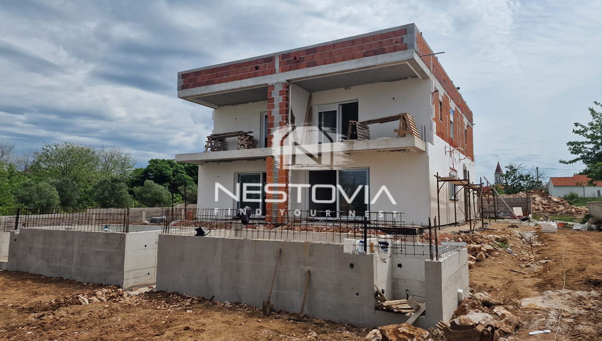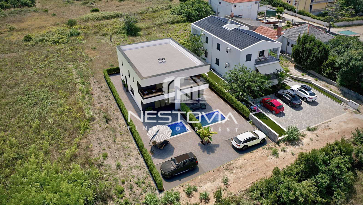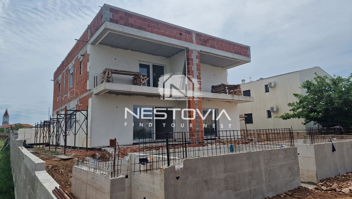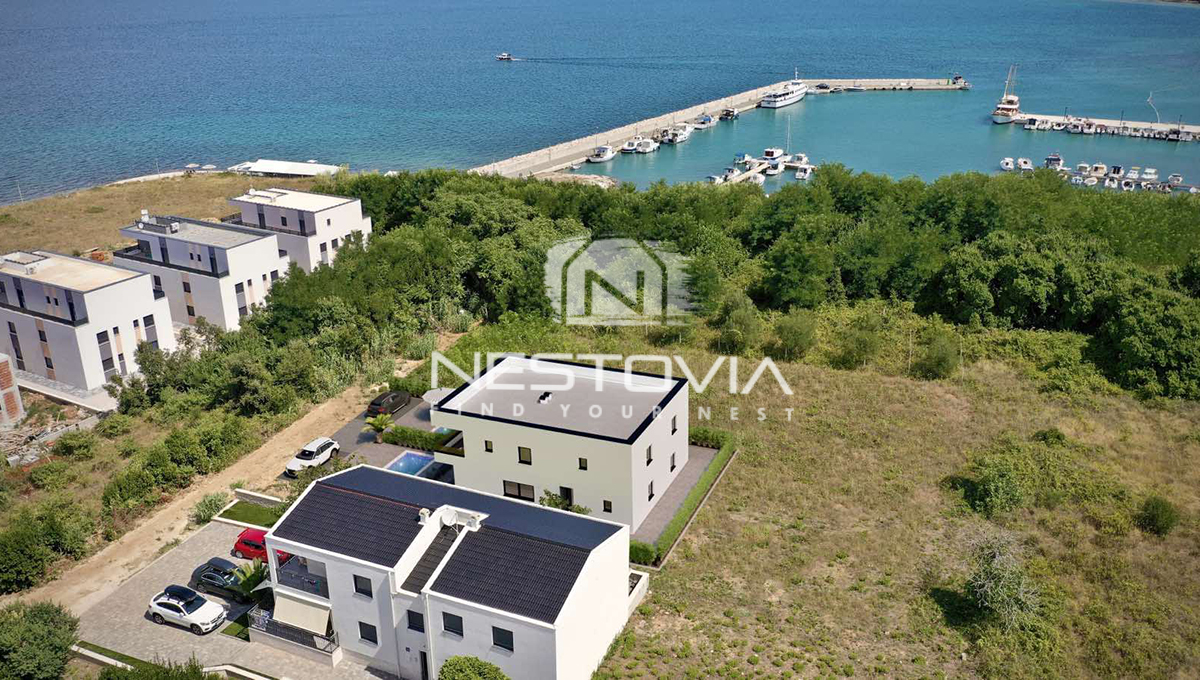 We are selling a modern semi-detached house located in the seaside town of Privlaka, just 100 meters from the sea. Each half of the house measures 306.31 m² and sits on a 528 m² plot. The property consists of two independent halves, which has been designed with comfort and functionality in mind.