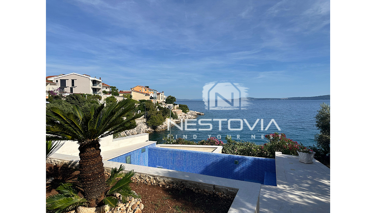 We present for sale a unique villa located in Okrug Gornji – an attractive location in the first row to the sea, with direct access to the beach.
