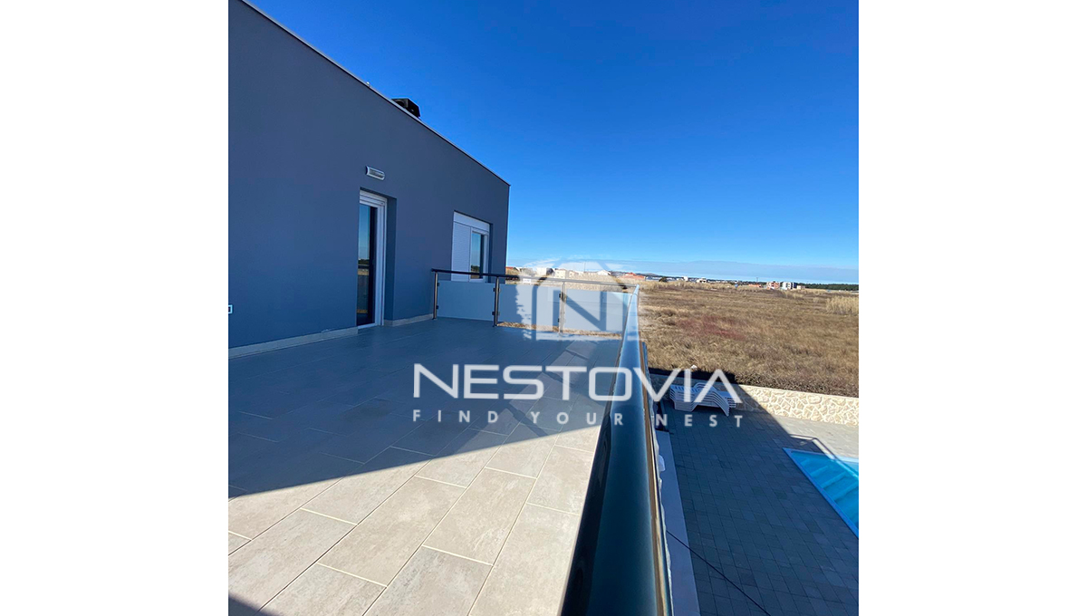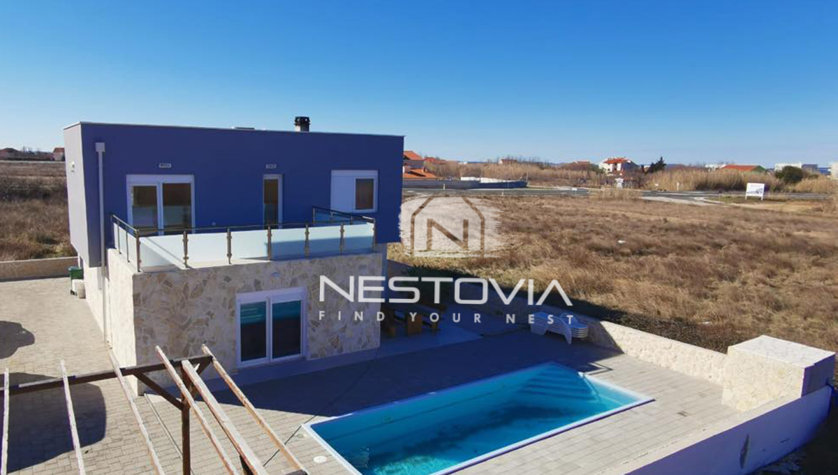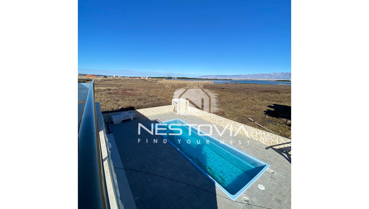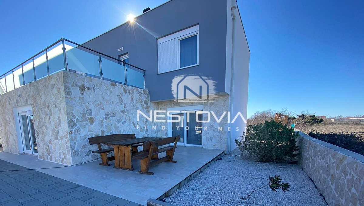 We are selling a modern 199 m² villa located in a quiet part of Privlaka, just 200 meters from the sea. The property was built on a 342 m² plot and offers comfortable interiors, a private garden with a pool, and beautiful views of the sea and surrounding area. It is an ideal option for those looking for a holiday home, year-round residence, or investment in tourist rentals.