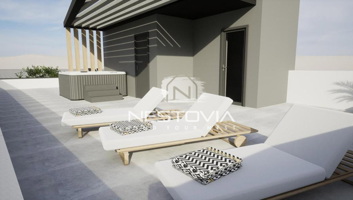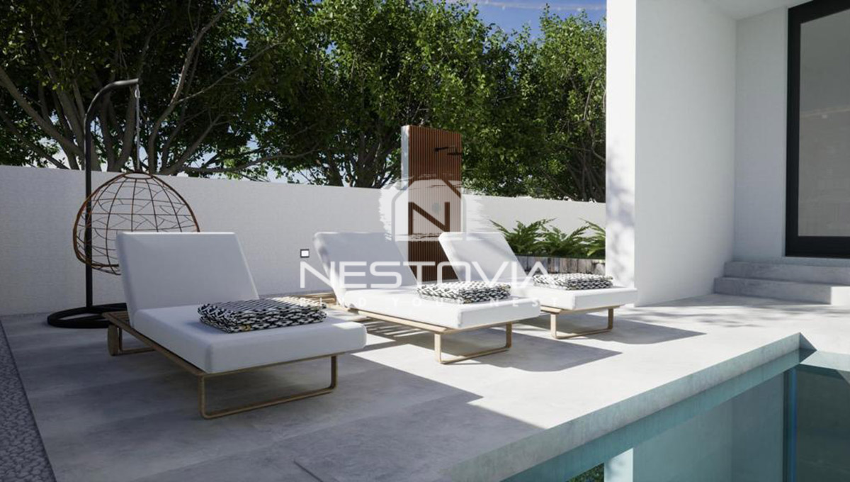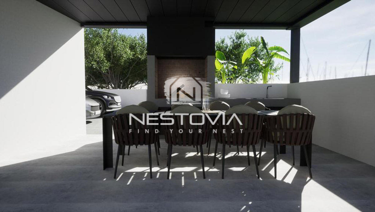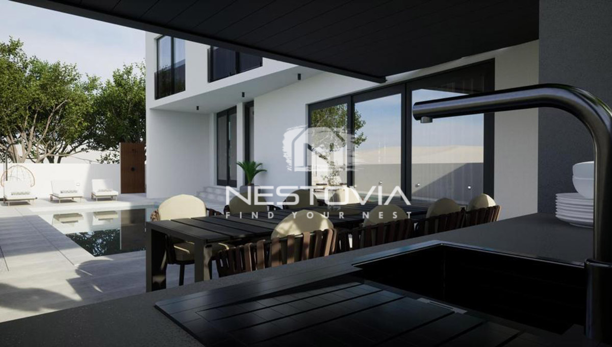 We are pleased to present this exceptional villa located in the picturesque village of Rovanjska, just one row back from the sea. This modern property, scheduled to receive its occupancy permit at the beginning of 2025, is the perfect choice for those seeking a combination of luxury, comfort, and privacy.
