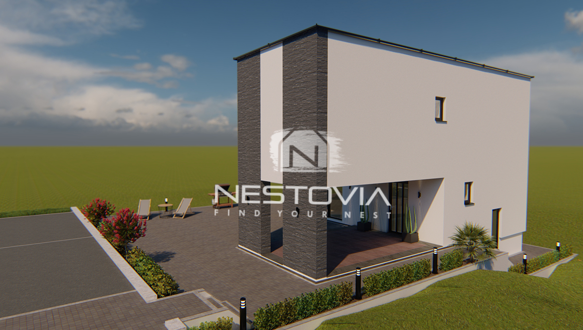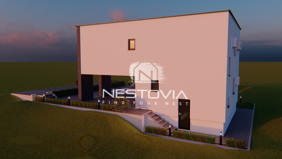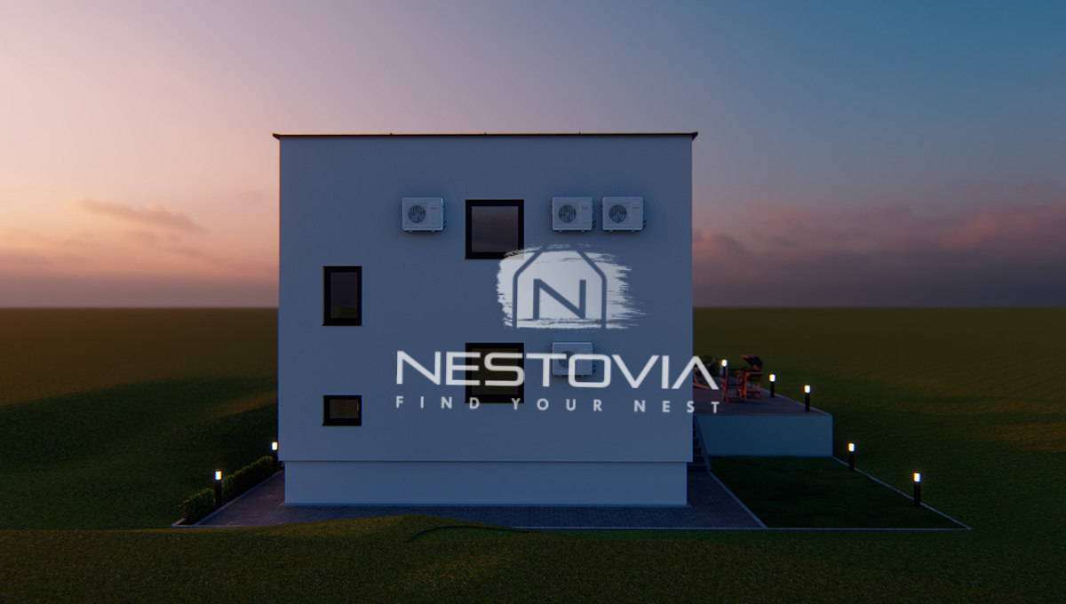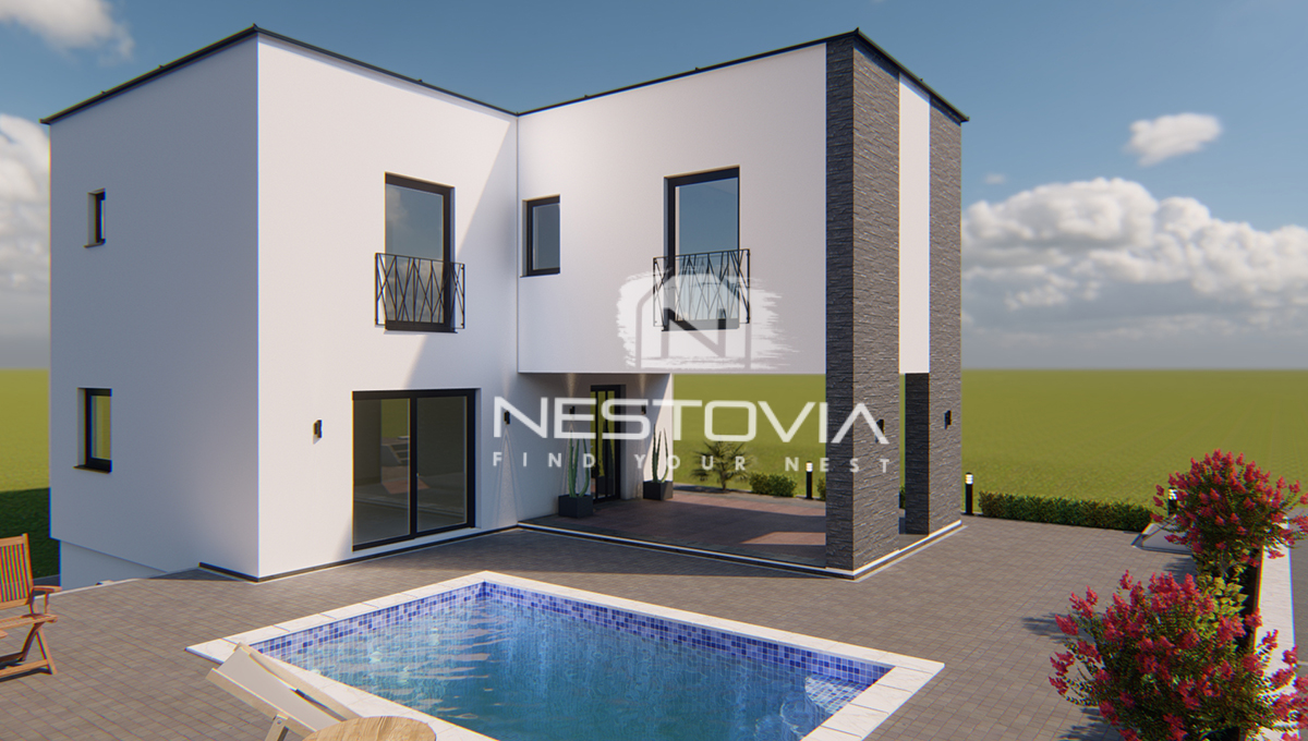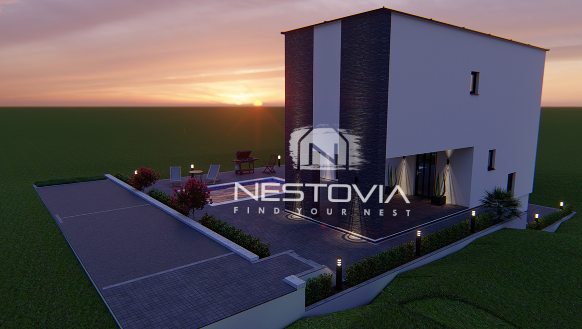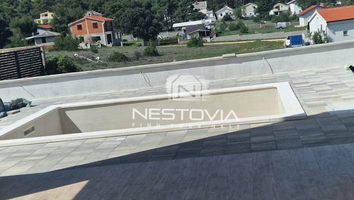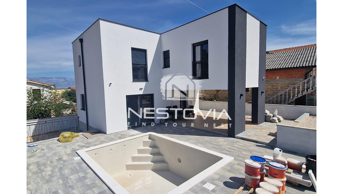 We are selling a modern detached villa with a pool, located in a peaceful and quiet part of the island of Vir, just 610 meters from the sea. The 150 m² property has been designed with everyday comfort and tourist rental potential in mind.