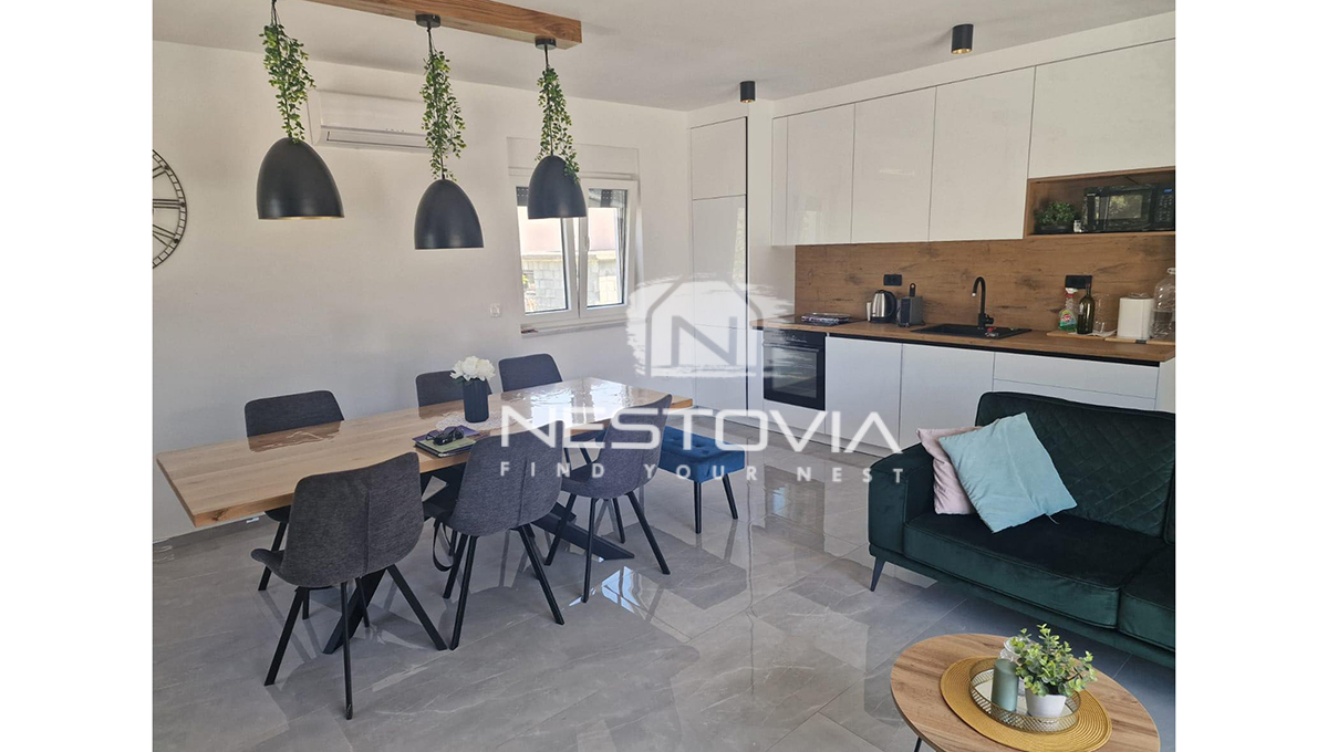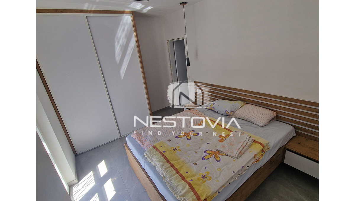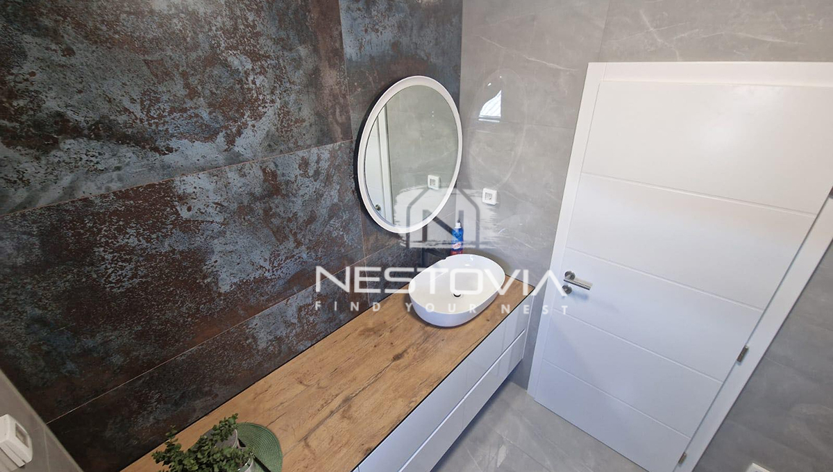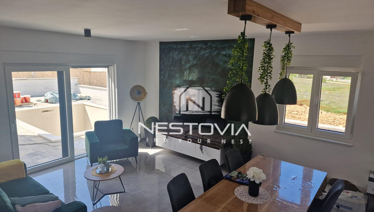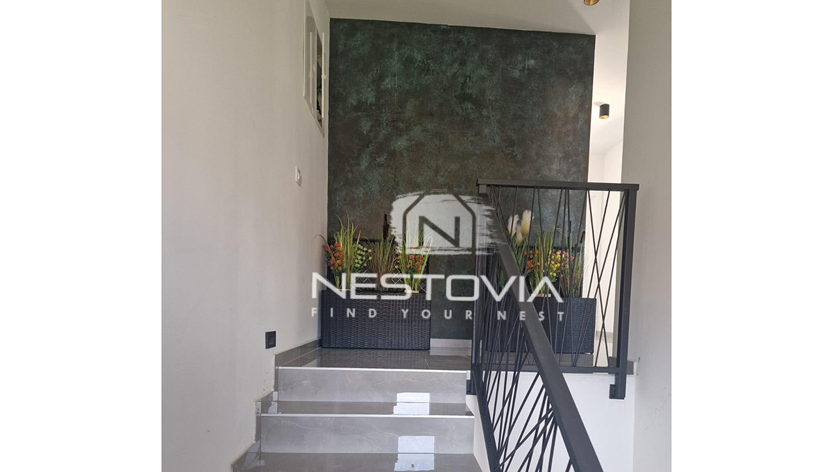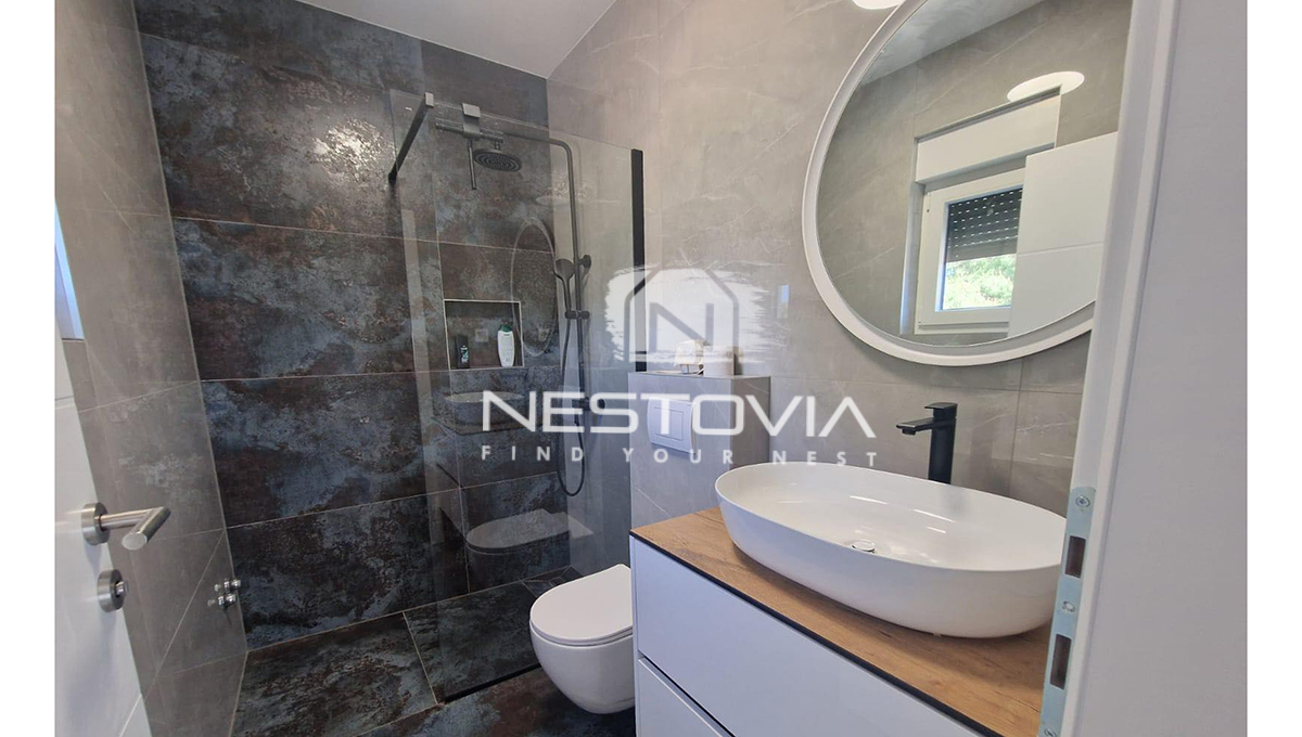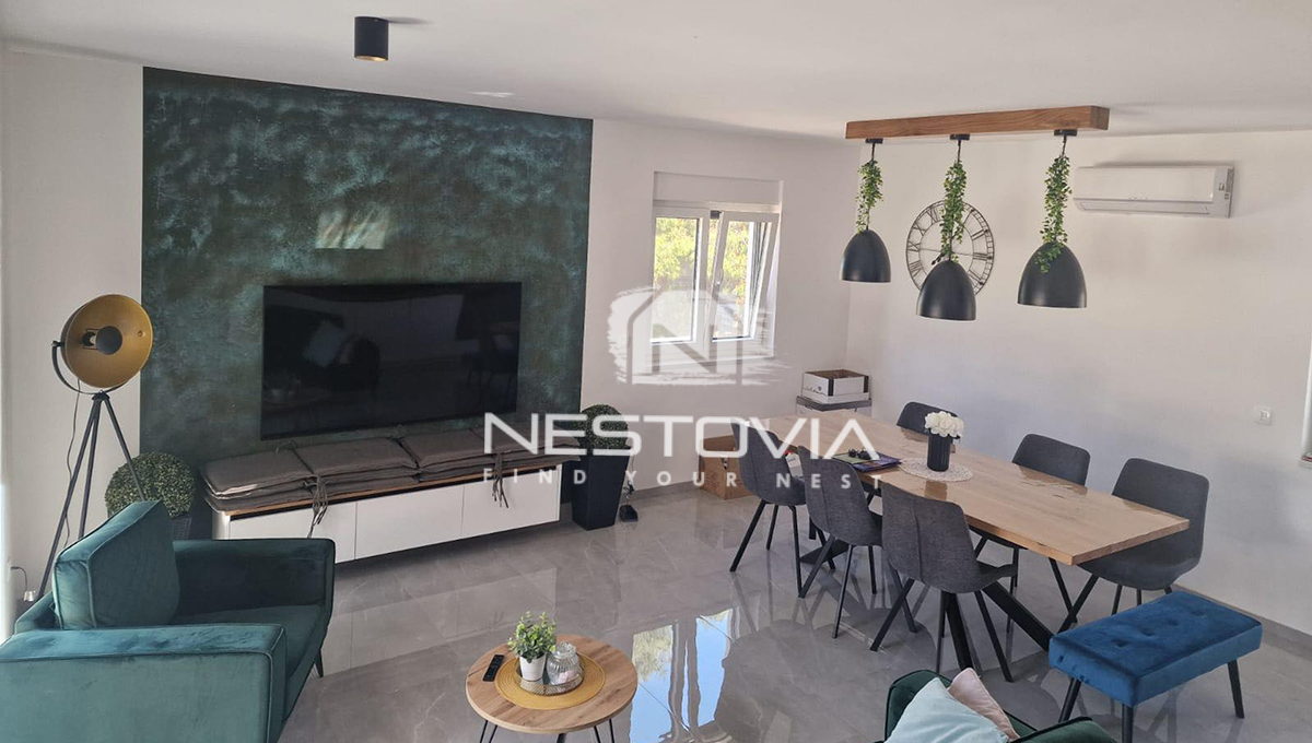 We are selling a modern detached villa with a pool, located in a peaceful and quiet part of the island of Vir, just 610 meters from the sea. The 150 m² property has been designed with everyday comfort and tourist rental potential in mind.