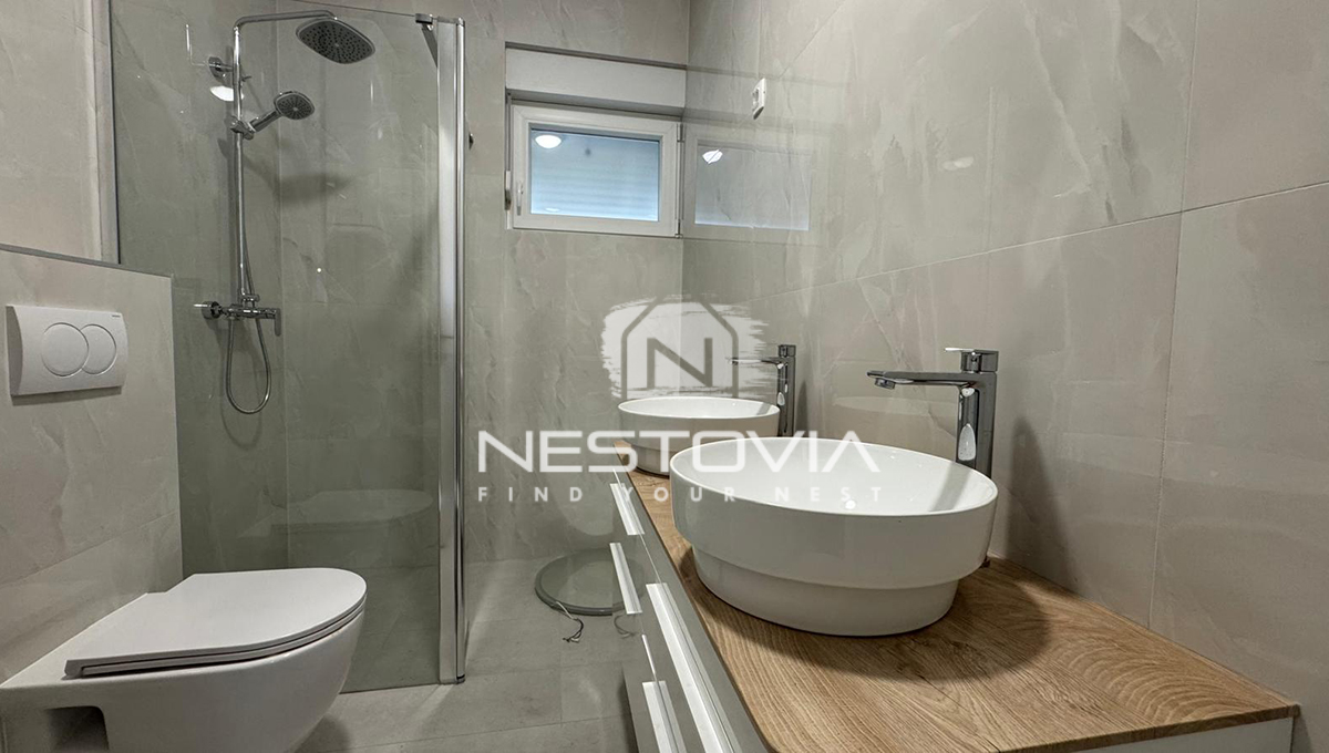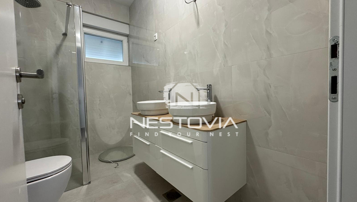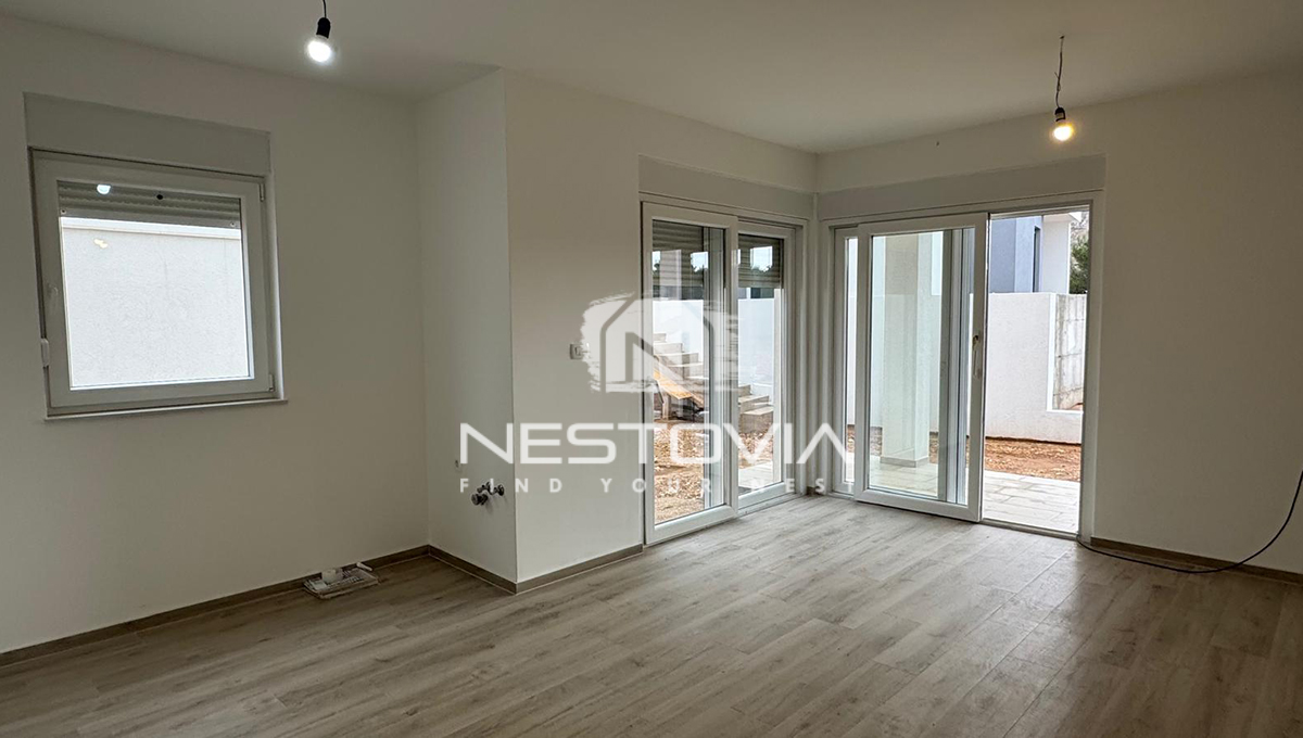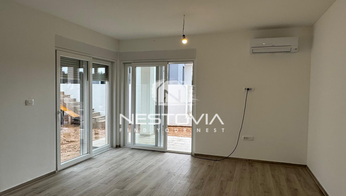 Pośredniczymy w sprzedaży nowoczesnego apartamentu położonego na parterze nowo powstającego budynku w miejscowości Grebaštica. Nieruchomość znajduje się w kameralnej zabudowie, zaledwie 300 metrów od morza i lokalnych plaż. Jest to idealna propozycja dla osób poszukujących nowej inwestycji, która łączy komfort mieszkania na parterze z rzadko spotykaną w nowym budownictwie, dużą powierzchnią prywatnego ogrodu.