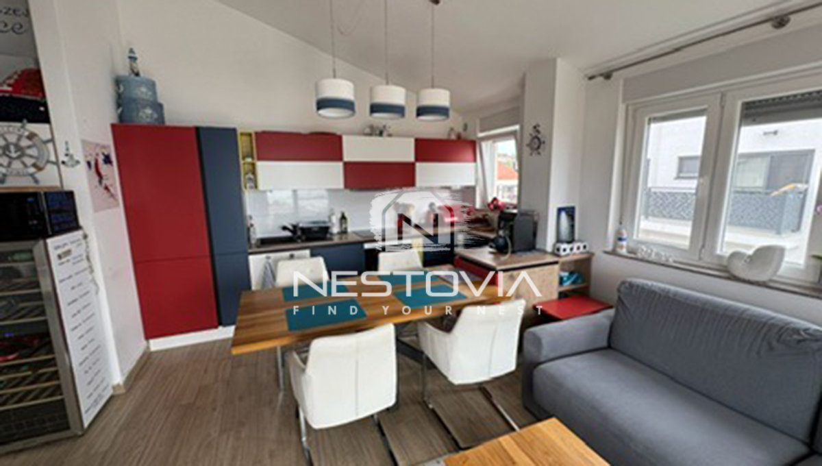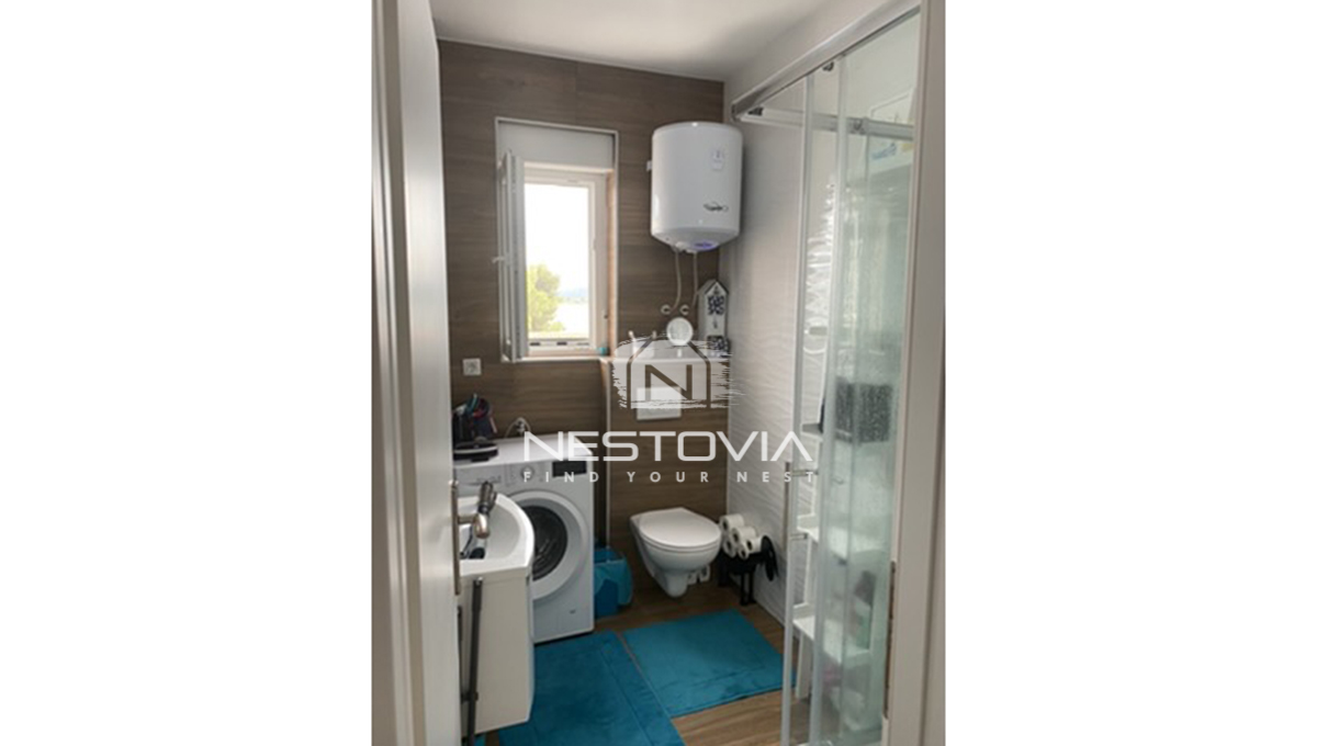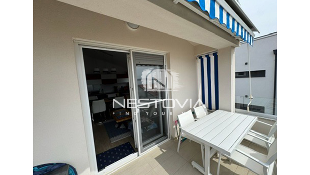 Pośredniczymy w sprzedaży przestronnego, dwupokojowego apartamentu położonego w miejscowości Turanj, w gminie Sveti Filip i Jakov. Nieruchomość znajduje się w kameralnym, dwupiętrowym budynku z 2019 roku, usytuowanym zaledwie 50 metrów od brzegu morza i plaży. Jest to doskonała propozycja dla osób poszukujących gotowego do zamieszkania lokalu, który łączy nowoczesne budownictwo z doskonałą ekspozycją na nadmorski krajobraz.