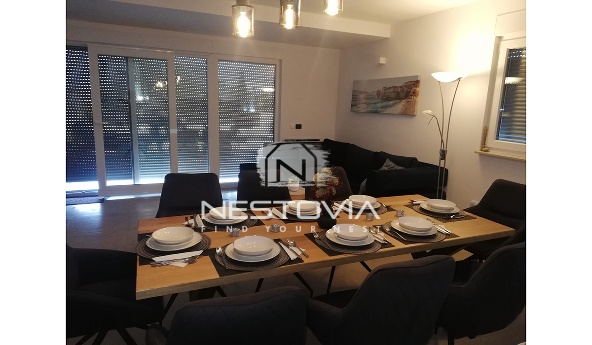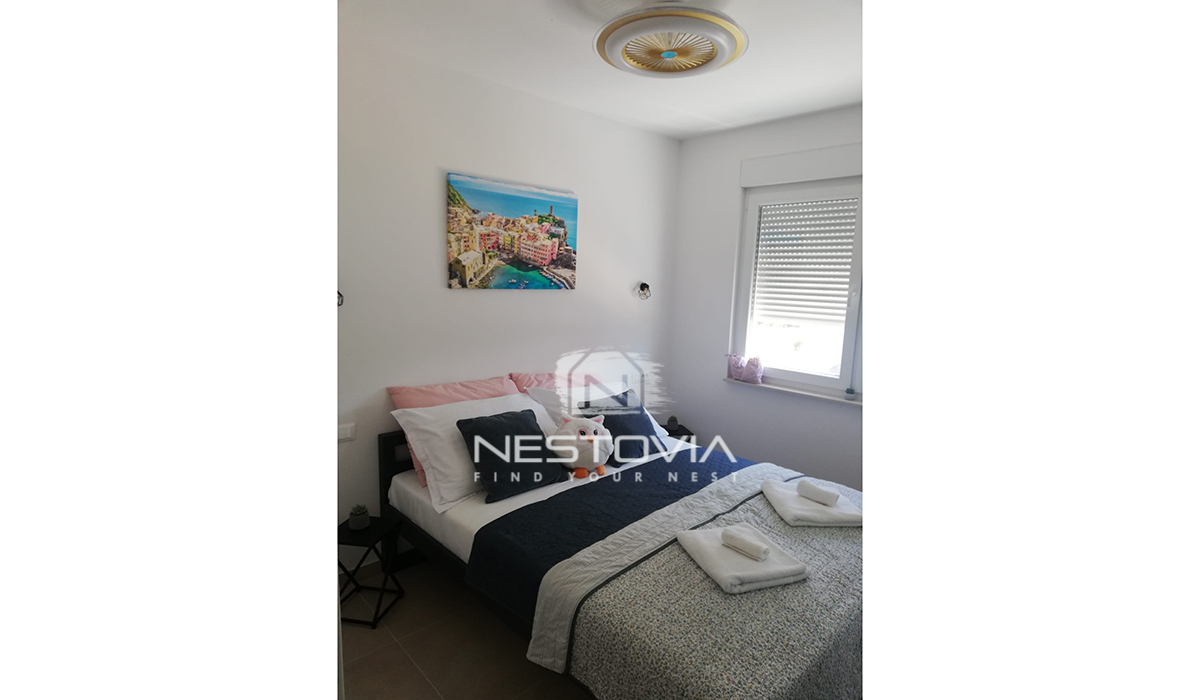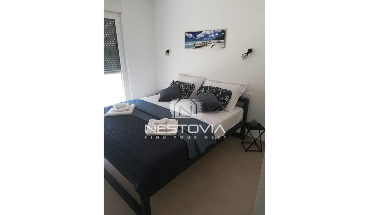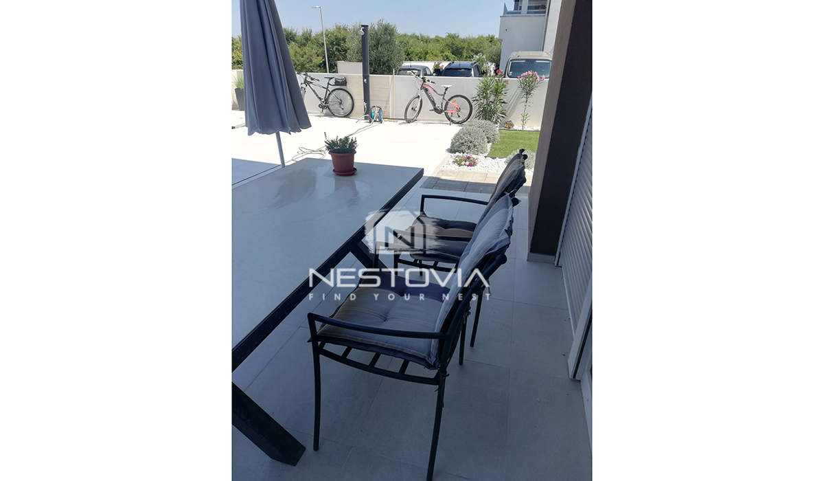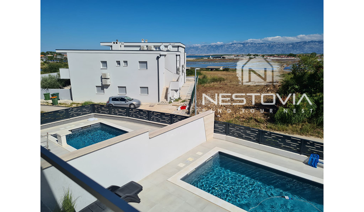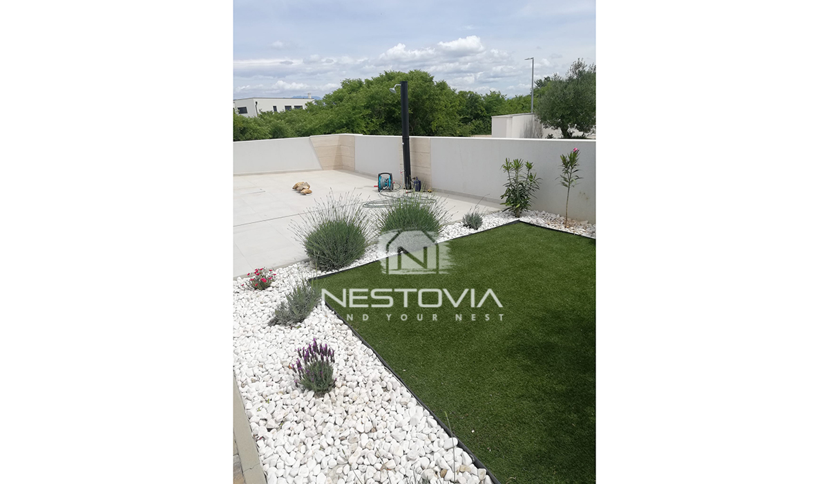 Zapraszamy do niezwykłej okazji zakupu eleganckiego domu w zabudowie bliźniaczej, położonego zaledwie 120 metrów od morza w malowniczym miasteczku Nin, blisko Zadaru.