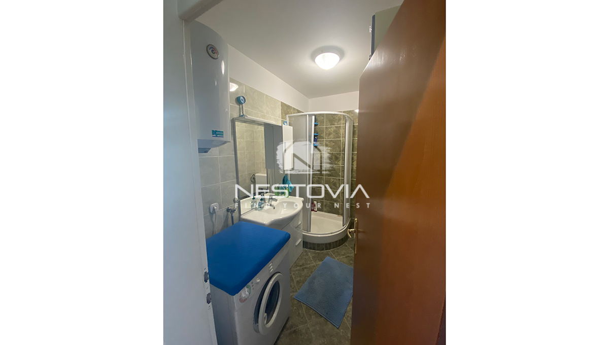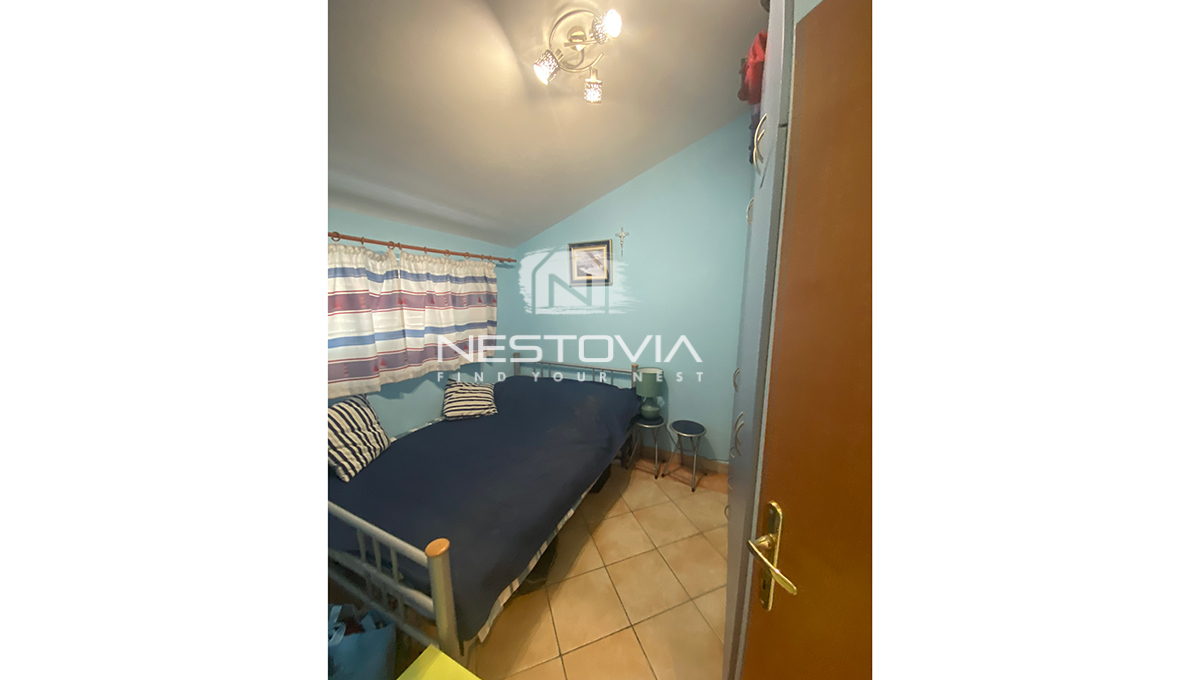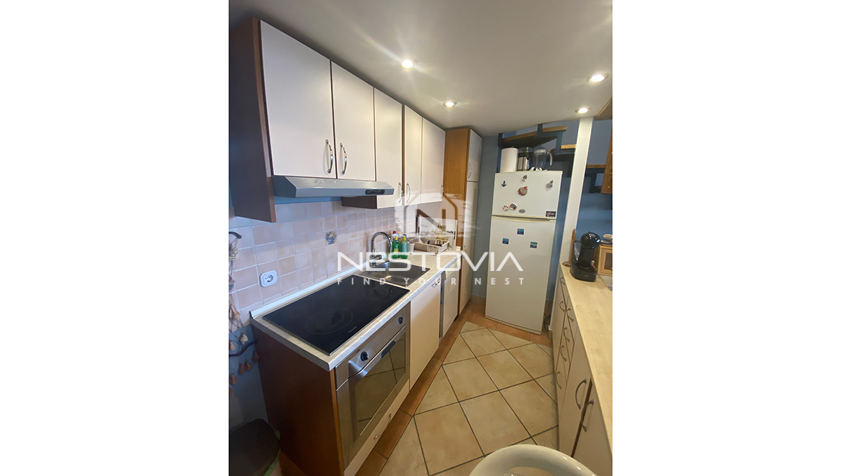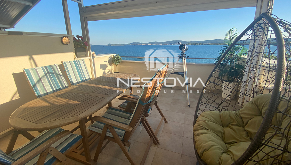 Szczególną cechą tej nieruchomości jest 30-metrowy taras nad plażą, z którego roztacza się piękny widok na morze, wyspę Pašman, Biograd i okoliczne wysepki. Taras jest zadaszony i posiada zdalnie sterowane, ruchome ściany boczne. Każda z nich posiada zacienioną część chroniącą przed słońcem oraz przezroczystą część, która chroni przed deszczem i zimnem w przypadku złej pogody, zapewniając jednocześnie piękny widok. Oprócz metrażu mieszkania, który jest widoczny na zdjęciu, znajduje się tam również galeria (która nie jest wliczona w metraż mieszkania) z dwiema sypialniami, która została niedawno odnowiona. Galeria wejściowa jest odkryta, ale istnieje możliwość jej zamknięcia i przekształcenia w inną część przestrzeni mieszkalnej. Mieszkanie znajduje się na poddaszu budynku, na trzecim piętrze.