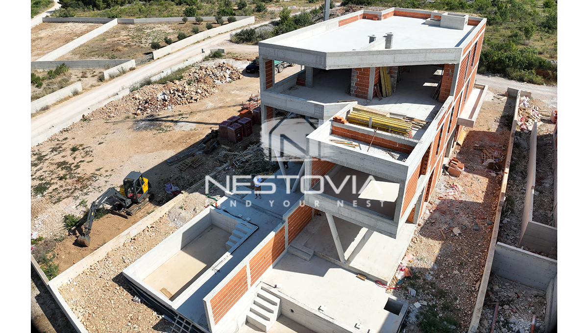 Pośredniczymy w sprzedaży nowoczesnego budynku z czterema luksusowymi apartamentami, położonymi w pięknej miejscowości Vodice, idealnej do wygodnego życia w stylu śródziemnomorskim. Budynek składa się z parteru i dwóch pięter. Apartamenty na parterze oferują prywatne baseny, co zapewnia idealną równowagę luksusu i komfortu.
